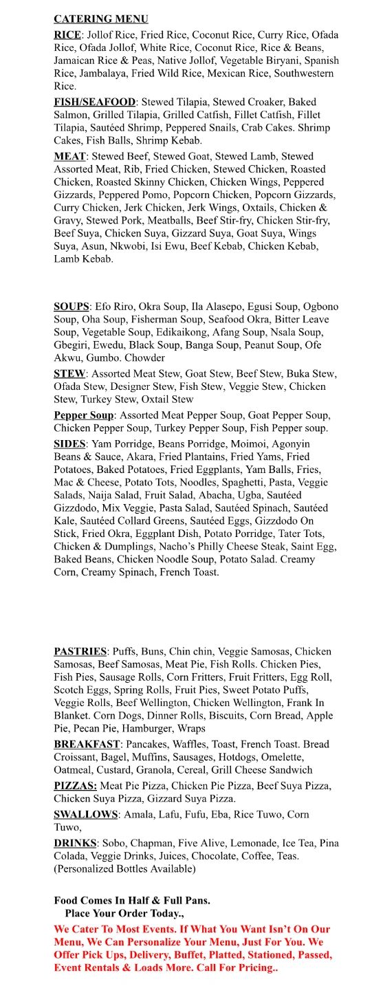 African, American, Caribbean, Chinese & Mexican Cuisine